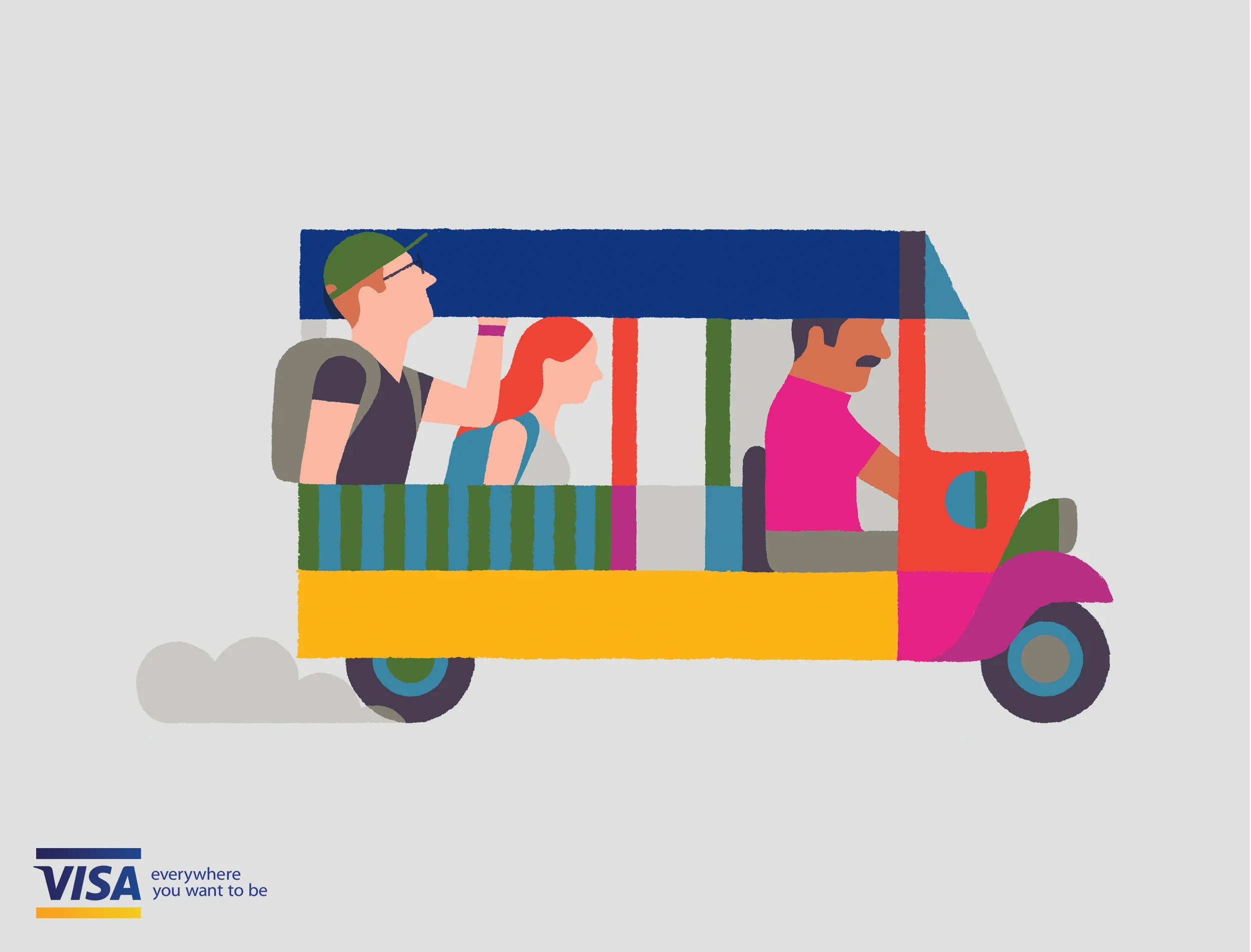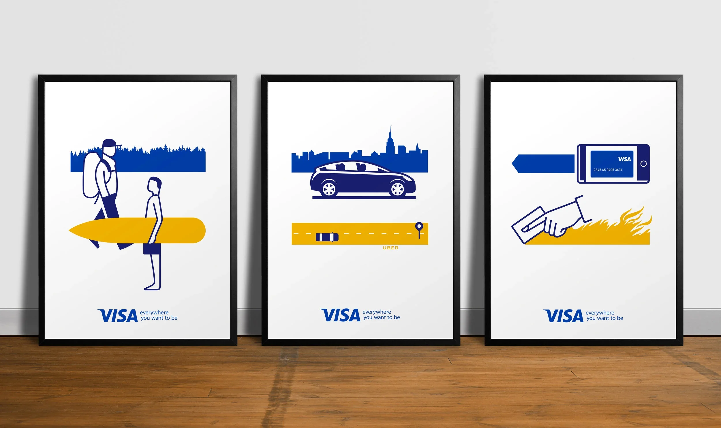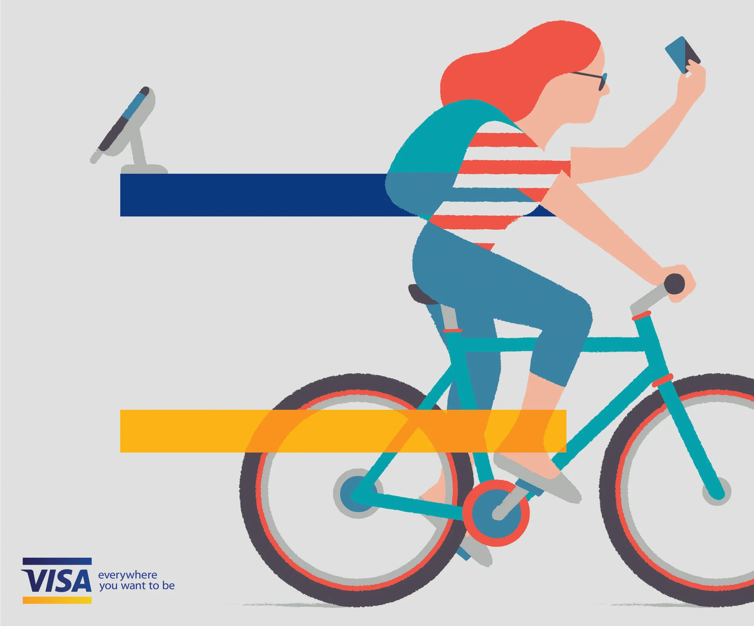 An illustrative global design exploration reimagining Visa’s iconic blue and yellow bar as a unifying visual language.
