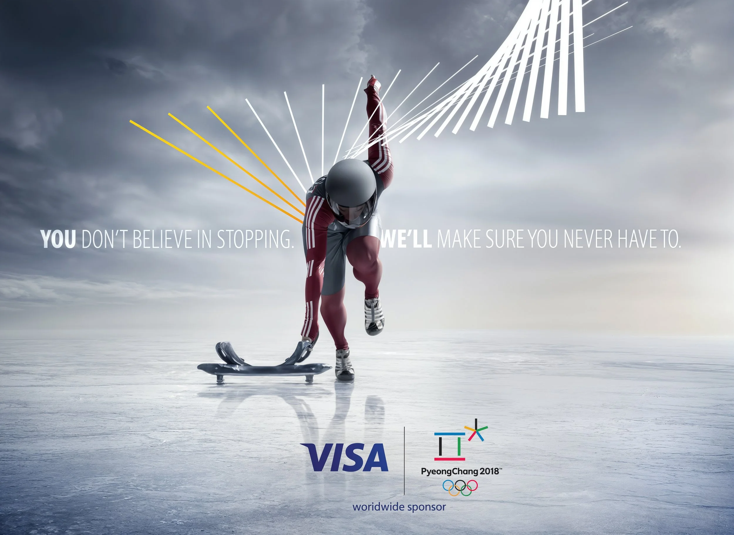 Bold headlines paired with athlete photography, designed to bring Visa’s Olympic Games sponsorship to life.